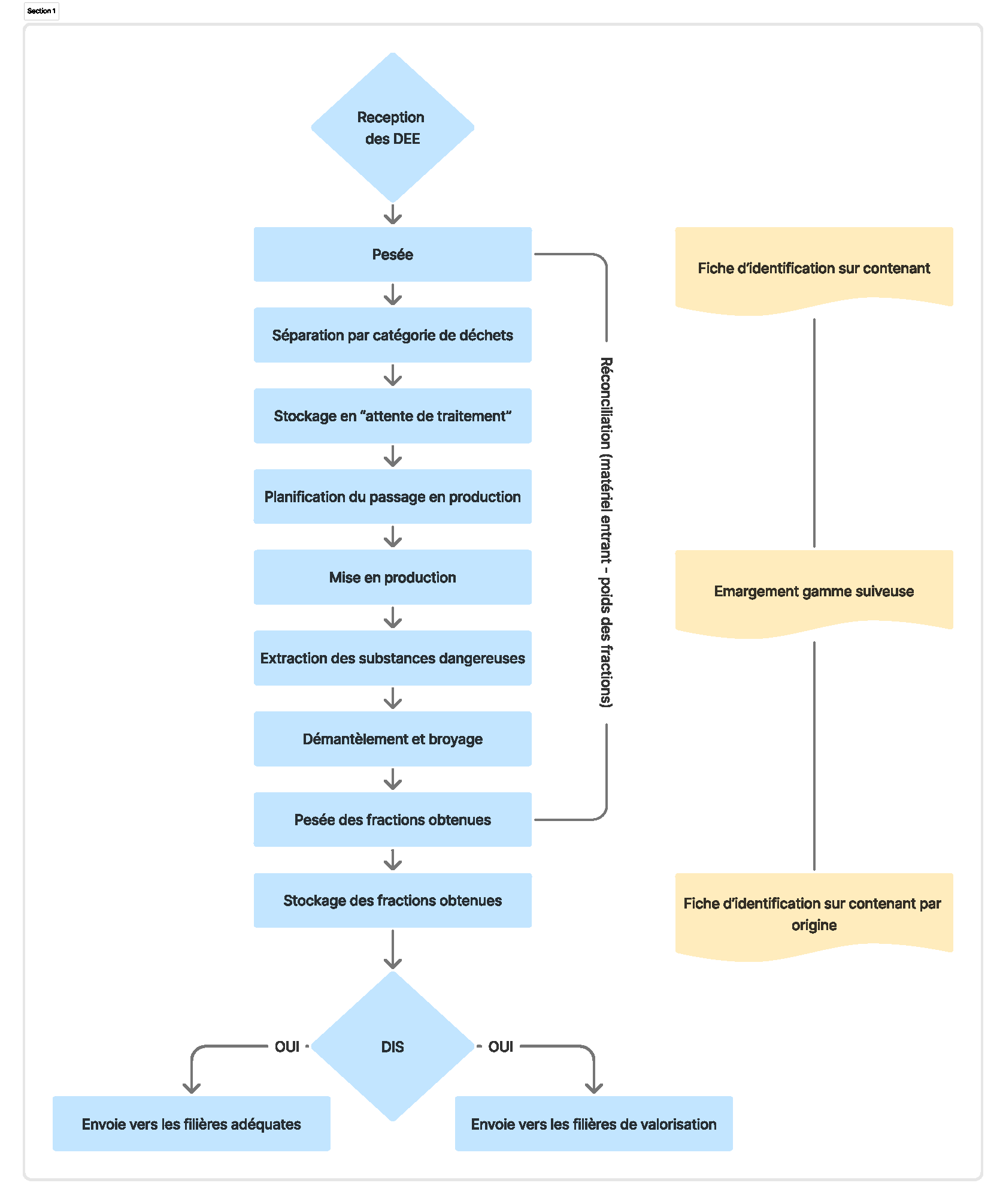 Lors de la réception des DEEE, ceux-ci vont suivre le schéma suivant: